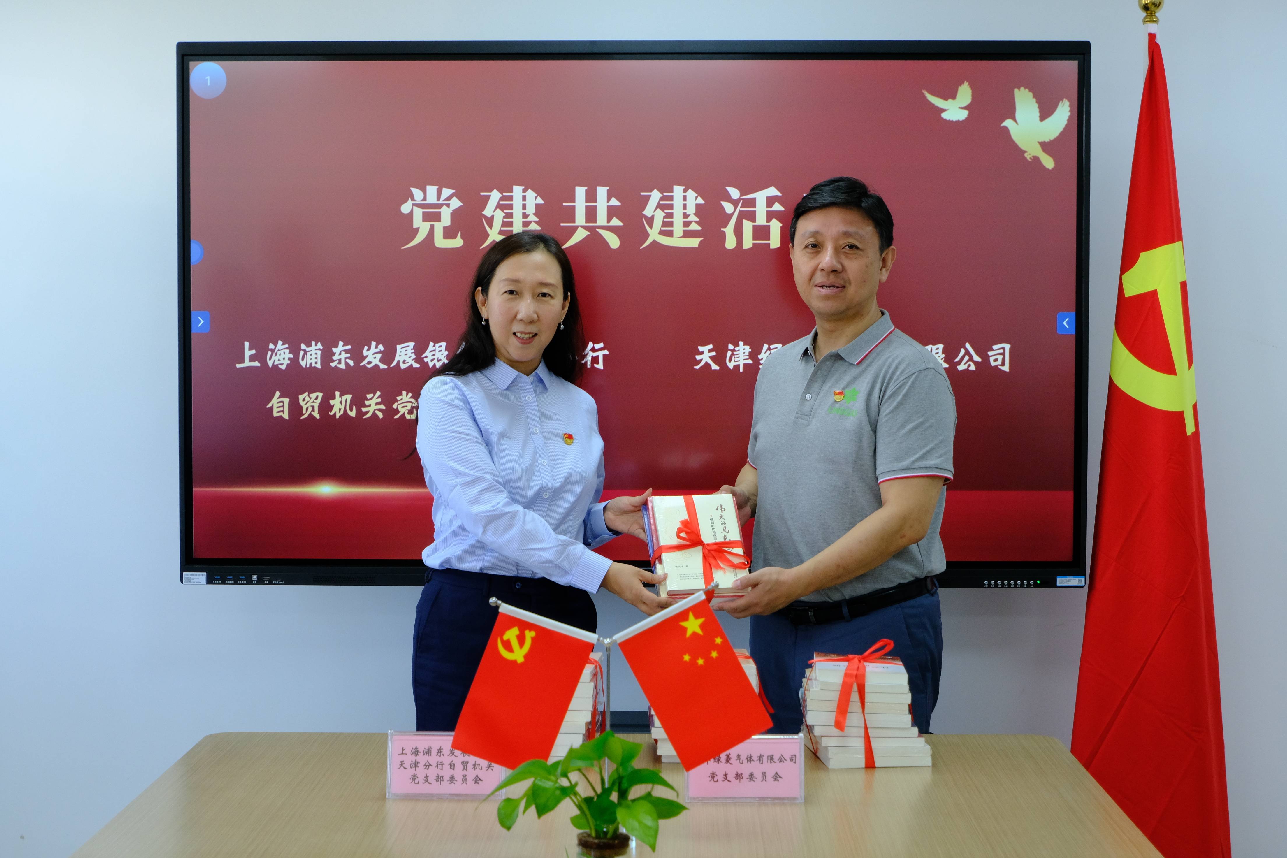 隨后,王劍同志與平翔同志代表雙方共同啟動(dòng)“黨建領(lǐng)航,傳遞書(shū)香”圖書(shū)分享活動(dòng)交接儀式。本次浦發(fā)銀行自貿(mào)區(qū)分行準(zhǔn)備了30本精選圖書(shū),向天津綠菱氣體有限公司傳遞分享包括《中國(guó)共產(chǎn)黨百年發(fā)展歷程》、《40年改變中國(guó)》等書(shū)籍,希望共建單位雙方多方面交流,共同以黨的二十大精神為指引,在閱讀中拓展見(jiàn)識(shí)、厚養(yǎng)學(xué)識(shí),以讀書(shū)求新知,以讀書(shū)思感悟,以讀書(shū)促進(jìn)步。