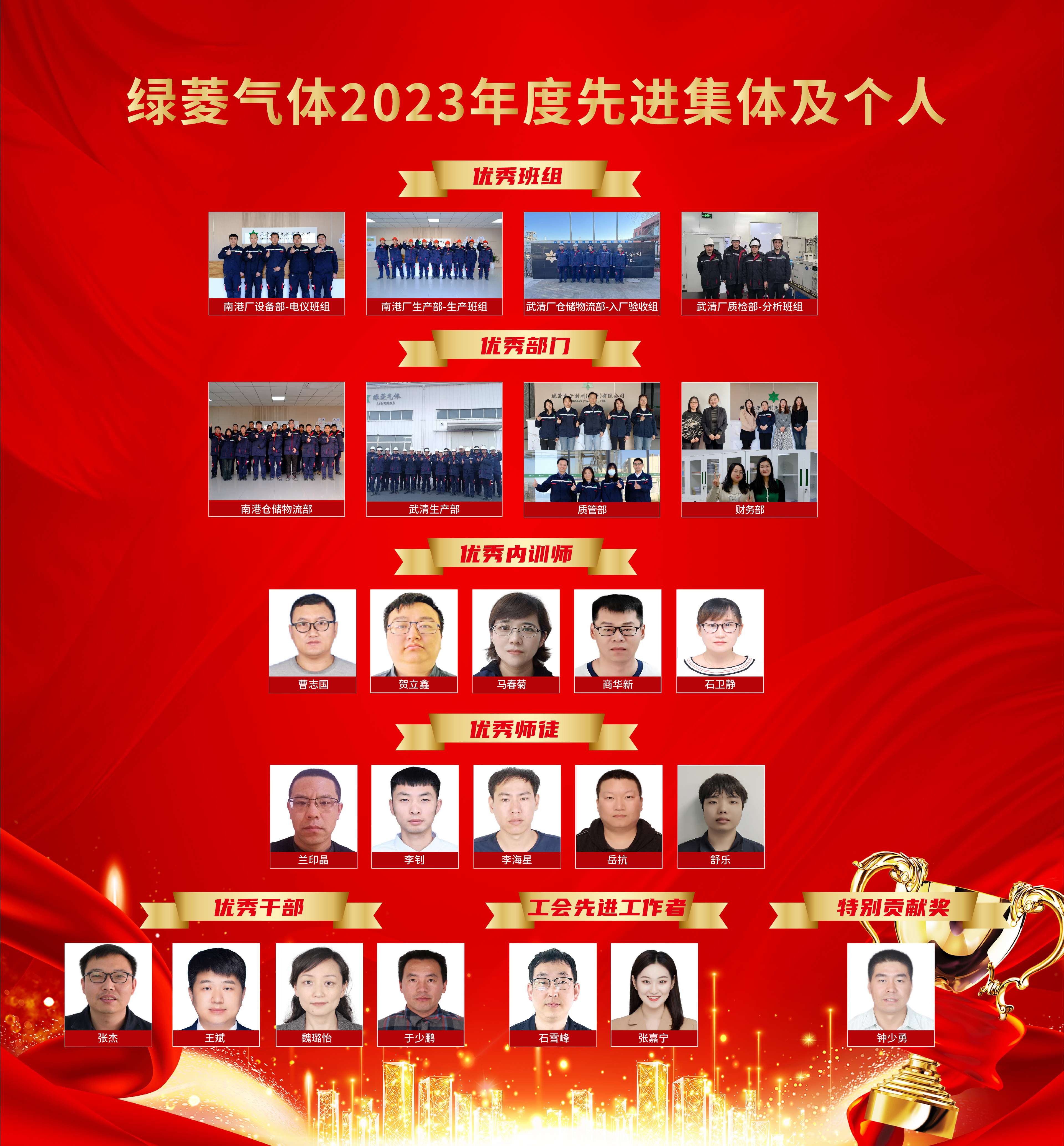 豪情歡歌辭舊歲,喜氣開篇迎新年,2024年2月2日,正是北方的小年,綠菱氣體公司在武清生產基地、南港生產基地舉辦以“蓄力生長,聚力共行,乘風破浪,龍騰四海”為主題的2024年工作會議,為了表彰2023年各條戰線涌現出的先進集體和個人,公司隆重舉辦2023年四季度優秀員工和年度先進集體、員工度表彰大會。